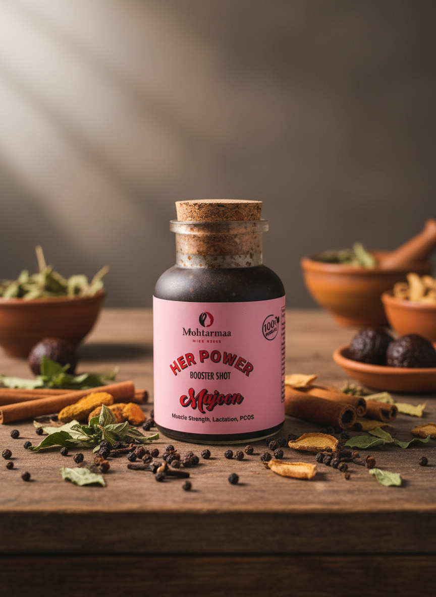 Mohtarmaa pesh karte hain “Her Power Booster Shot Majoon”—ek qadeem aur azmooda (traditional) formula jo khusoosi tor par khawateen ki sehat aur tawanaayi ke liye banaya gaya hai. Yeh majoon qudrati jari bootiyon (herbs) ka ek nayab murakkab hai jo aapki rozmarrah ki zindagi mein naya josh aur taqat bharta hai.